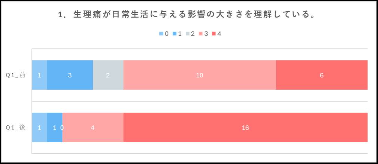 - 「生理痛の理解が体験前は出来ていなかったので、体験出来てより理解や配慮を意識できるようになった。」